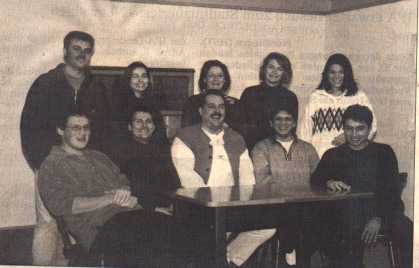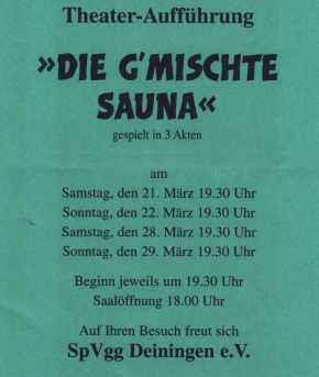 Jürgen Wenzel (Bgm.Sohn-Hansl), Claudia Matusche (Magd v. Bgm.-Burgl), Heike Bachmann-Mader (Bgm.Frau-Theres), Gudrun Wiedemann (Wirtsfrau-Ida), Iris Greiner (Bäckersfrau-Hedwig) sitzend von links: Siegfried Herrle (Metzger-Franz), Joachim Oefele (Friseur-Luis), Peter Meyer (Bürgermeister-Thomas), Willi Rehklau (Wirt-Xaver), Jürgen Eichelmann (Bäcker-Florian) |