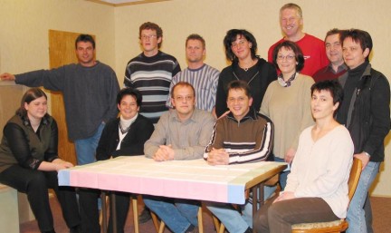 Jürgen Wenzel (Feriengast-KarlHeinz Ruf), Siegfried Herrle (Polizist-Xaver Schwoisfuß), Joachim Oefele (Wirt-Maximilian Prächtig), Elke Fackler (Kurschatten-Lisa Grüber), Heike Bachmann-Mader (Bäuerin-Rosa Schlickenmoser), Hans Hahn (Regie), Alois Gail (Regie), Anni Römer (Maske) sitzend von links: Corina Hahn (OrtsBewohnerin-Kreszens), Katja Leitsch (Sepps Frau-Barbara Dreschhofer), Karl Angel (Freund v. Bauer-Sepp Dreschhofer), Willi Rehklau (Bauer-Anton Schlickenmoser), Irene Rau (Kurschatten-Amanda Preller) |