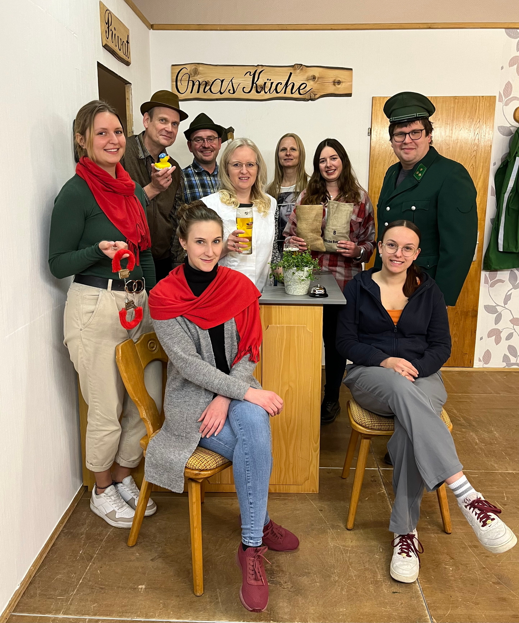 | Helfer: | Vielen Dank an ALLE fleißigen Helferinnen und Helfer, die uns in der Maske, beim bauen und gestalten der Bühne, Platzreservierung, Platzeinweisung usw. tatkräftig unterstützt haben! |